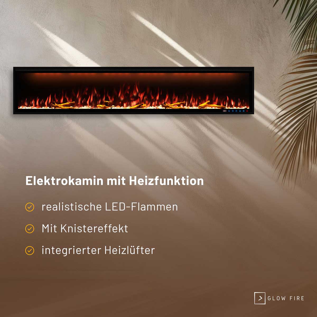 Safety & Comfort: Non-reflective safety glass, overheat protection, a timer function (e.g., 1-9 hours), and a crackling effect ensure a safe and pleasant user experience.