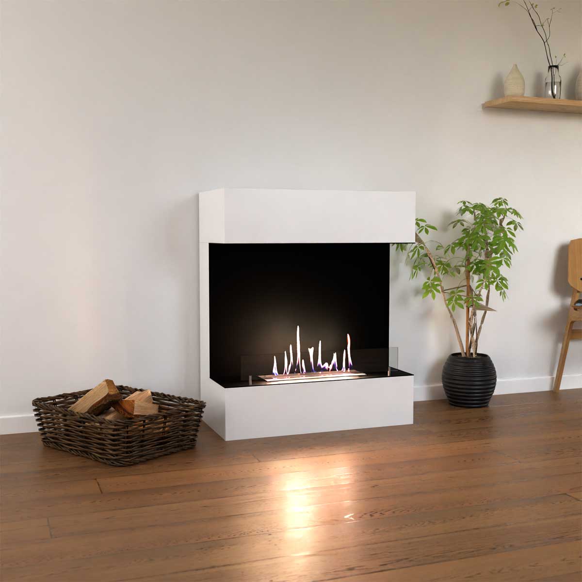 The Glow Fire Kongsberg is a modern & elegant ethanol fireplace, that stylishly structures living spaces. Thanks to the all-round safety glass panels, the flames can be enjoyed from all angles – creating a cozy atmosphere with a real flame.The leak-proof stainless steel burner ensures maximum safety when operating with bioethanol. With a selection of different colors, the Kongsberg blends harmoniously into any interior design style – whether modern, classic, or minimalist.