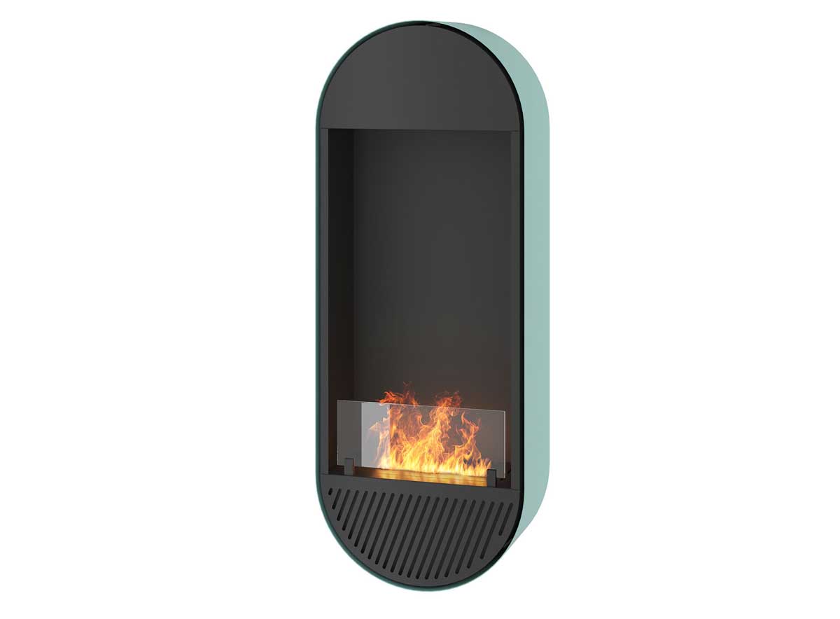 The interior of the fireplace, including the burner, is always available in black or white. The outer frame with the tube, which adds elegance and a modern touch, is available in various colors.
