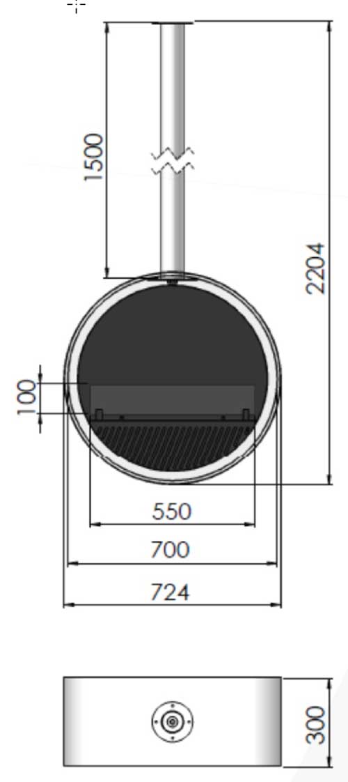 - Dimensions WxHxD: 724x2204x300 mm (length of tube 1500 mm)