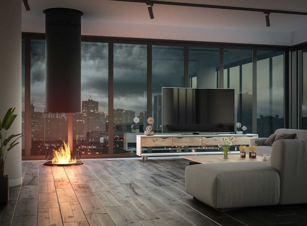 Our fireplaces can be installed anywhere: on (on in) a wall, on the floor, furniture or outside on a terrace for example. Apart from their decorative function, our fireplaces also generate heat, which, as soon as after a few minutes, noticeably increases temperature in the room.