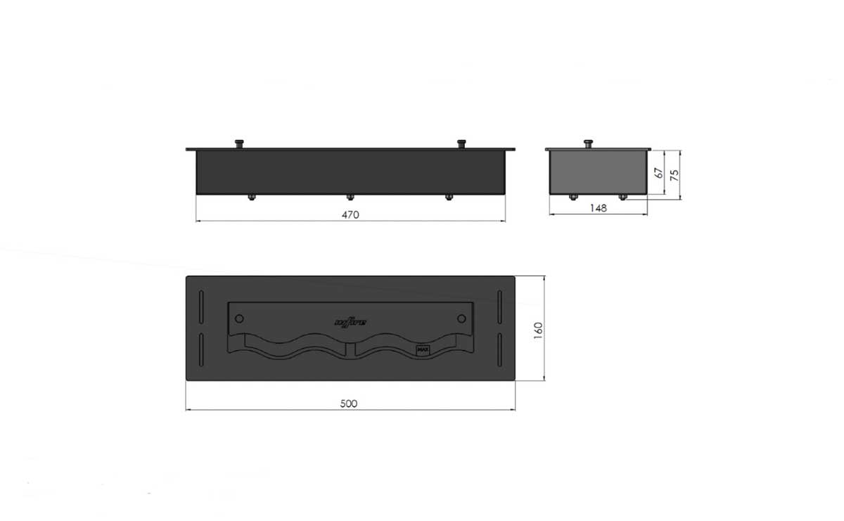 The 500 mm fireplace offers the opportunity to integrate a long and effective fire line into your interior. A simple cutout and an absorbent fiber filling the container allow the fire to burn evenly and stably throughout the burning time.