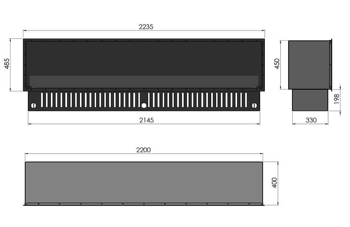 - Dimensions WxHxD: 2200x450(648)x400 mm