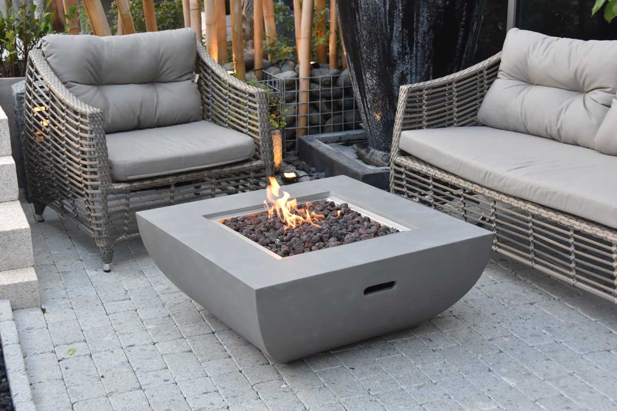 - Fire pit material: fibre-reinforced concrete (GRC)