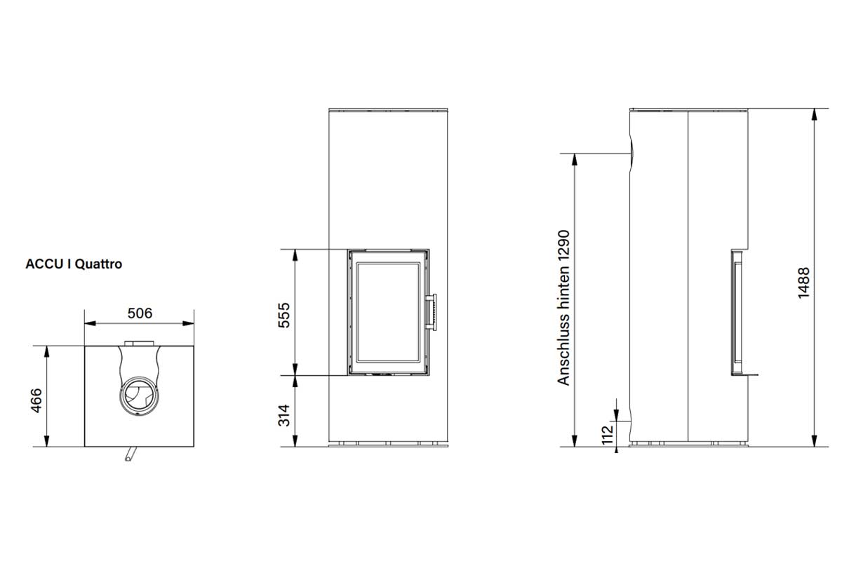 ACCU I – Compact Storage Stove with Fireclay CoreThe ACCU I Quattro is a powerful yet space-saving storage stove, equipped with a solid 180 kg storage core made of 4.5 cm thick fireclay. The high-quality firebricks ensure excellent heat retention and a long service life.