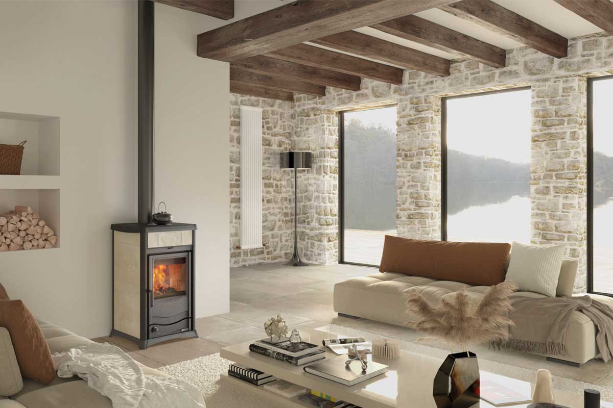 The TermoRossella Majolica combines noble materials such as majolica and natural stone with a durable cast iron stove. With low emissions and optimal combustion management, it heats the room with elegance and efficiency. It also offers the option of connecting it to the home's thermal system and supplying the radiators with hot water.