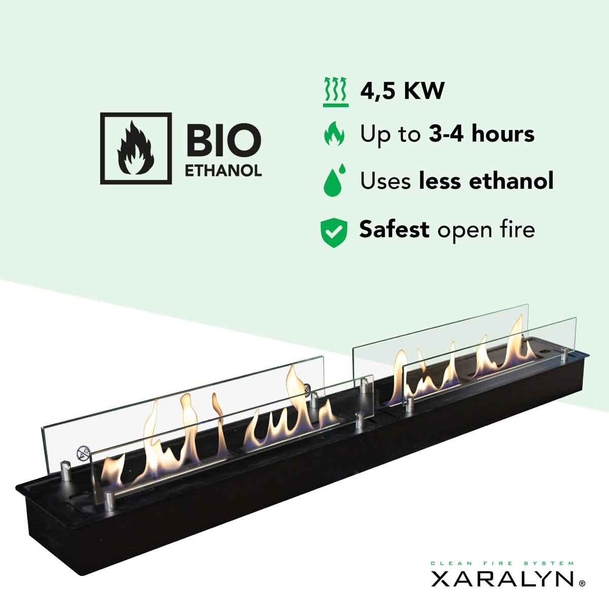 The XARALYN Bioethanol Built-in Burner XXL combines modern design, safe technology, and flexible application options. Perfect for anyone who wants to enjoy the ambiance of a real fire – sustainable, clean, and elegant.