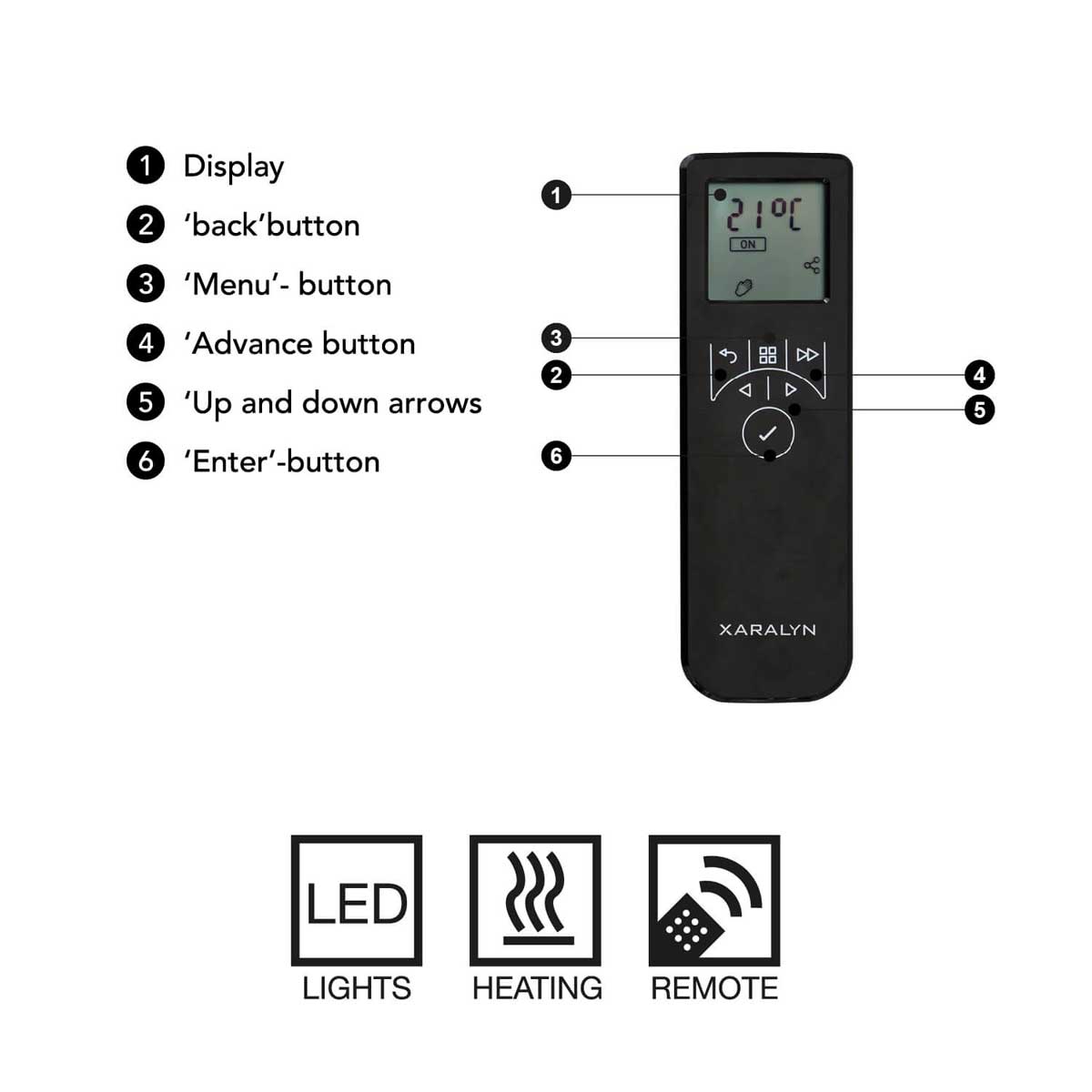- Convenience at the touch of a button: Remote control operation, flame effect independent of heating function