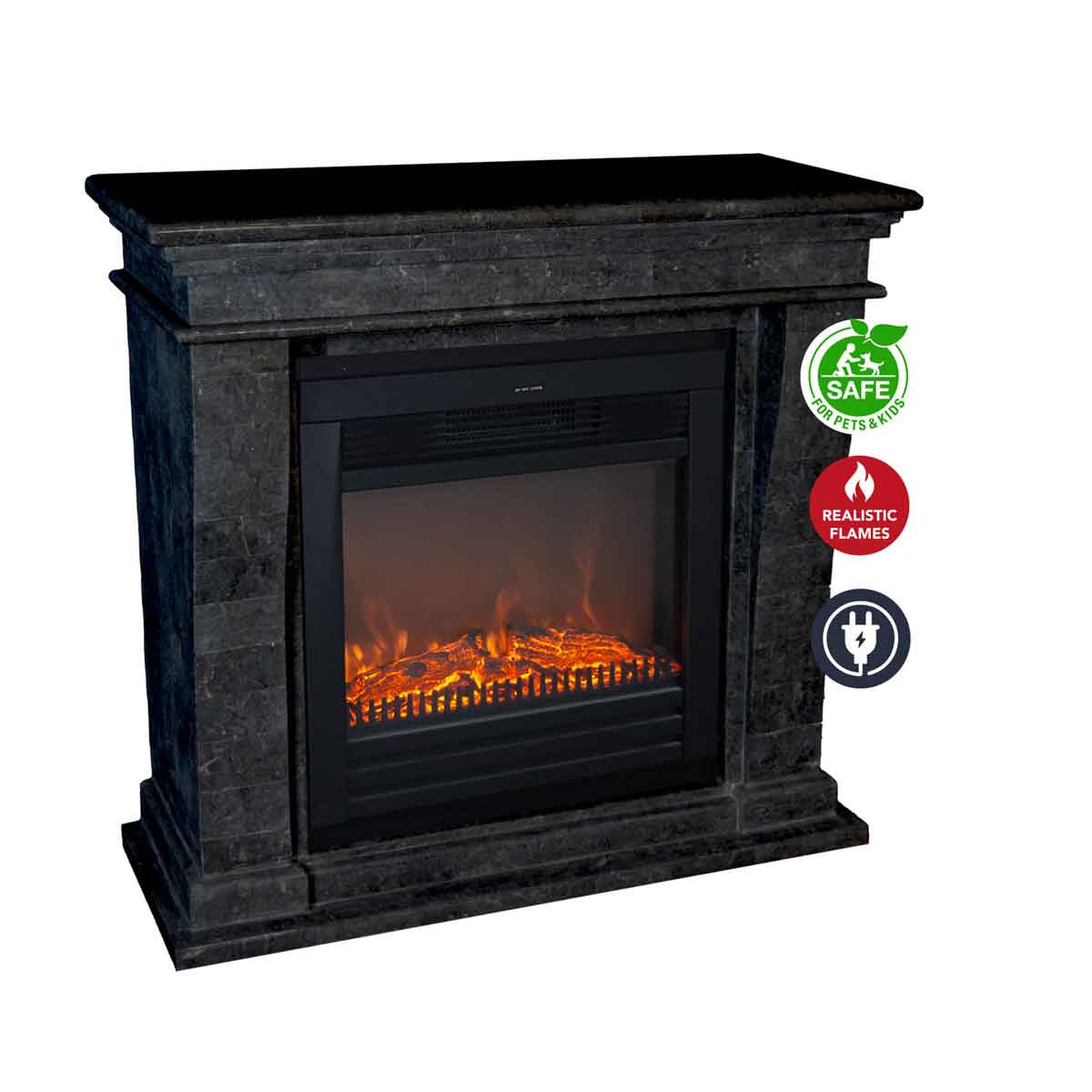 Xaralyn Kreta Mini – Electric Fireplace Made of Natural Stone with LED Flame Effect