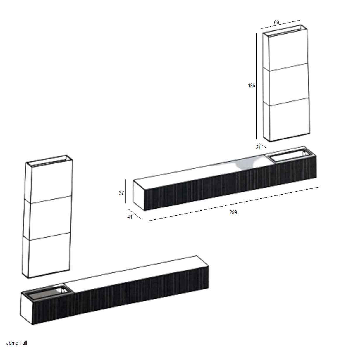 - Dimensions top: approx. 1860 x 690 x 210 mm (H x W x D)