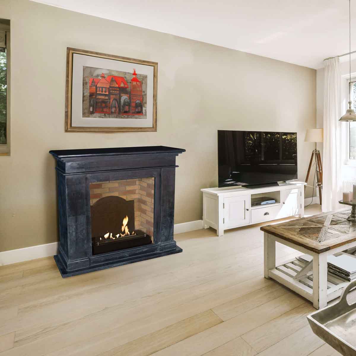 Setting up the fireplace is straightforward and can be done yourself (only the weight requires some care). Since no chimney or connection is needed, the fireplace can be placed anywhere – whether in rented apartments, conservatories, party rooms, or offices.