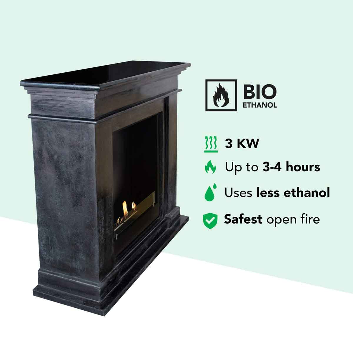 Xaralyn Kos Stone Anthracite – Fireplace Made of Natural Stone with real flames