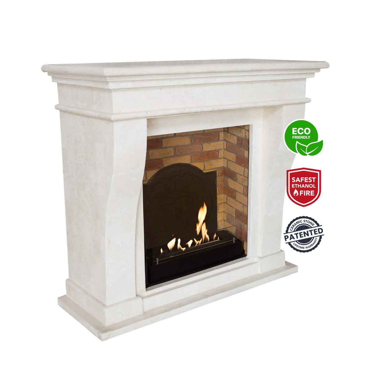 Xaralyn Ethanol Fireplace KRETA Stone White with Stone Decor & Medaillon