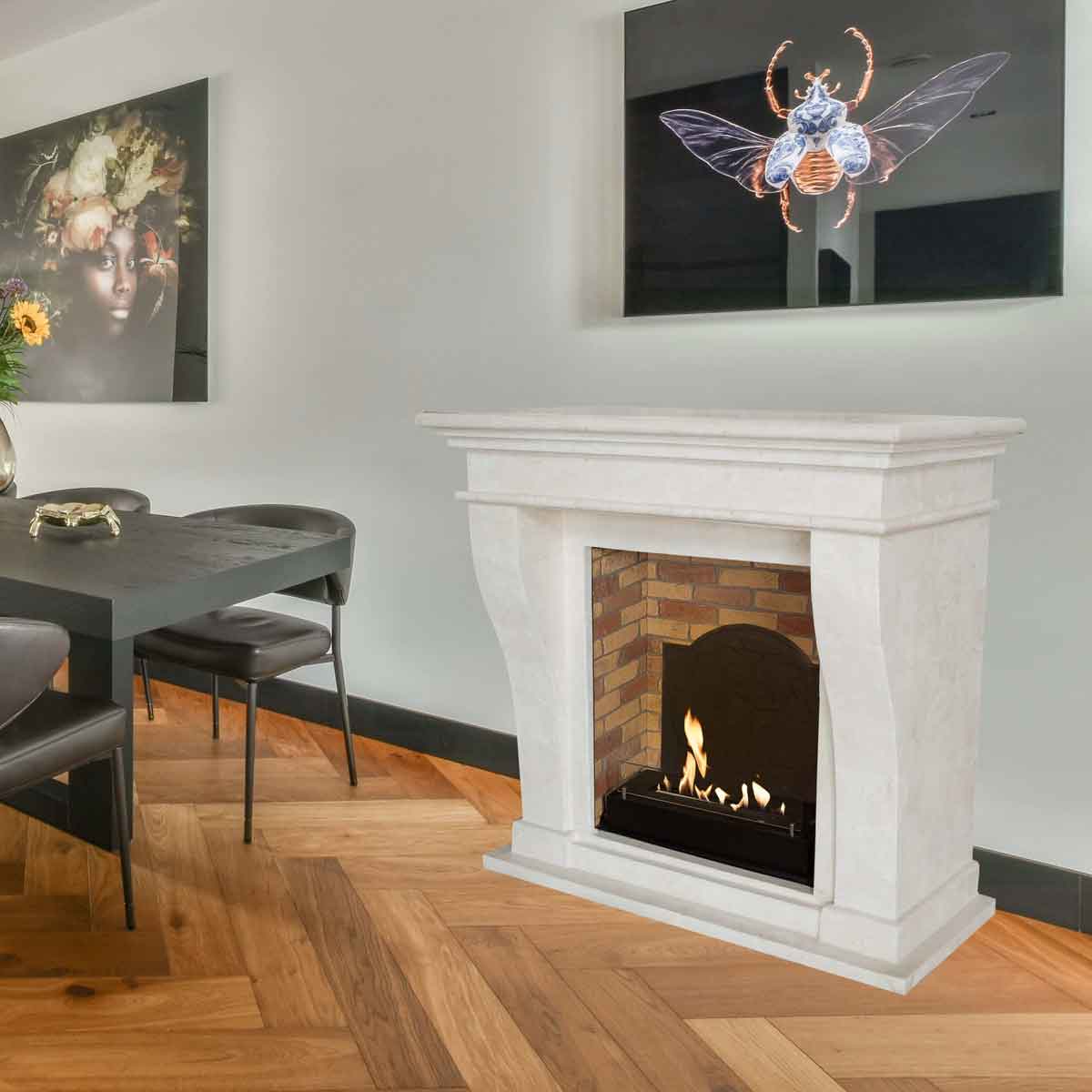 Xaralyn Kreta Stone White/ Decor/ Medaillon – Fireplace Made of Natural Stone with real flames